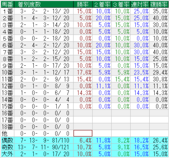 阪神大賞典の馬番別成績