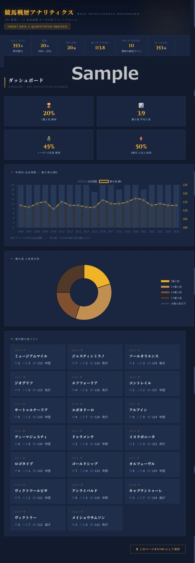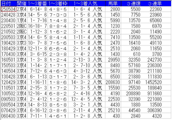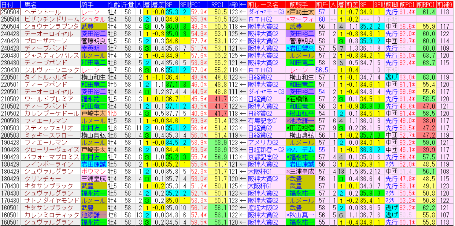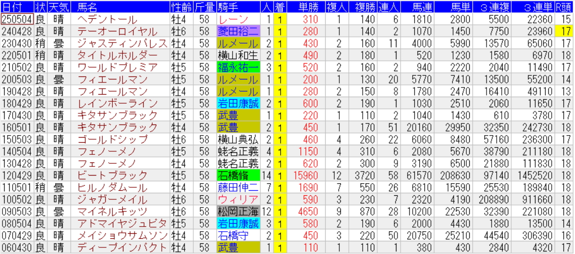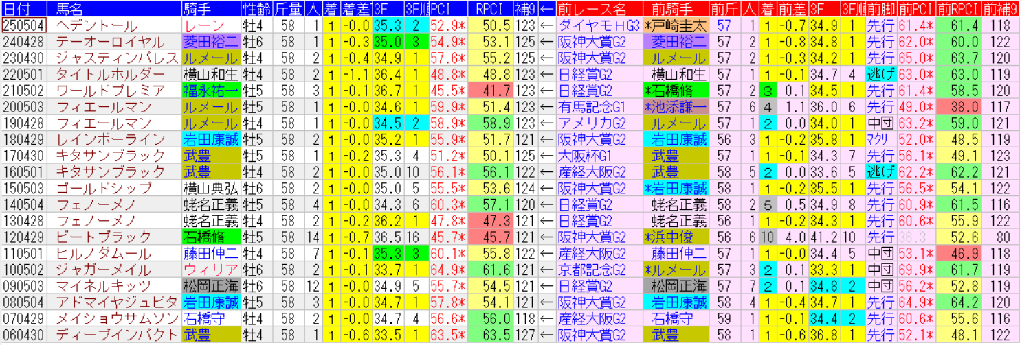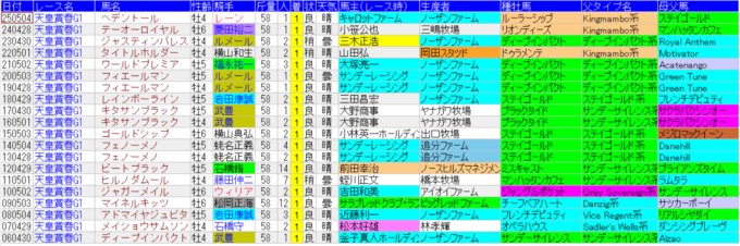 天皇賞春の過去20年の成績を集計し、1着馬の馬データ、1着馬の前走成績、前走レース別成績、血統別(種牡馬)成績、配当一覧など必見データ