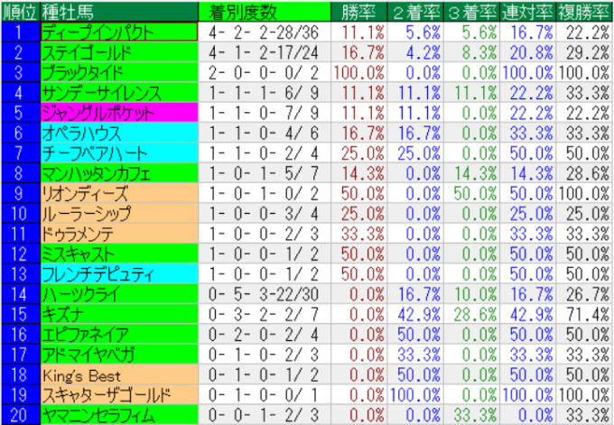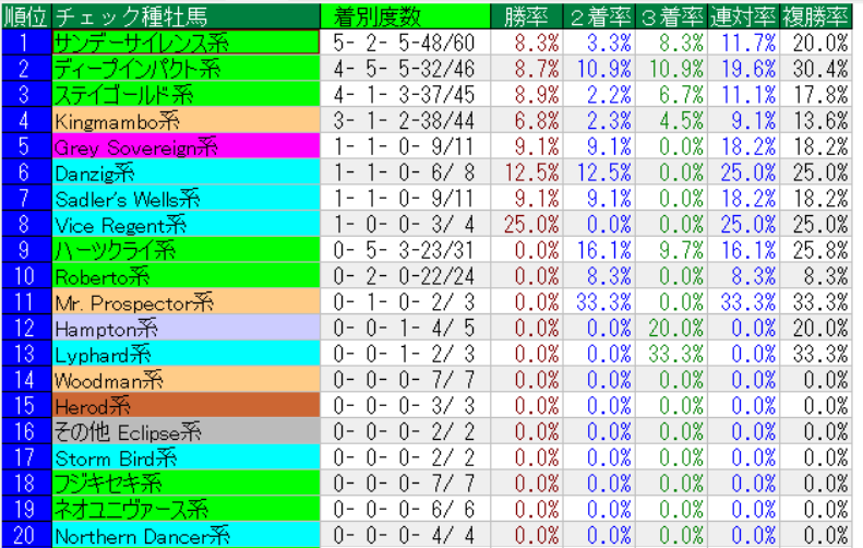天皇賞春の種牡馬系統別成績(上位20位まで)