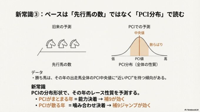 出走馬全体のPCI分布を見れば、その年のレース性質が予測できるんです。