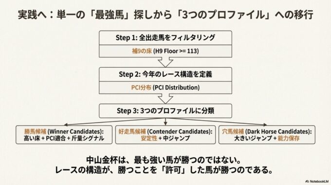 「上り順位 × PCI適合 × 補9」という3点セットで、その馬の勝ち筋を総合判断する。これが実践的です。