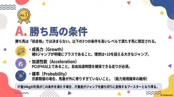 A. 勝ち馬の条件:「今回、跳ねる」能力の証明