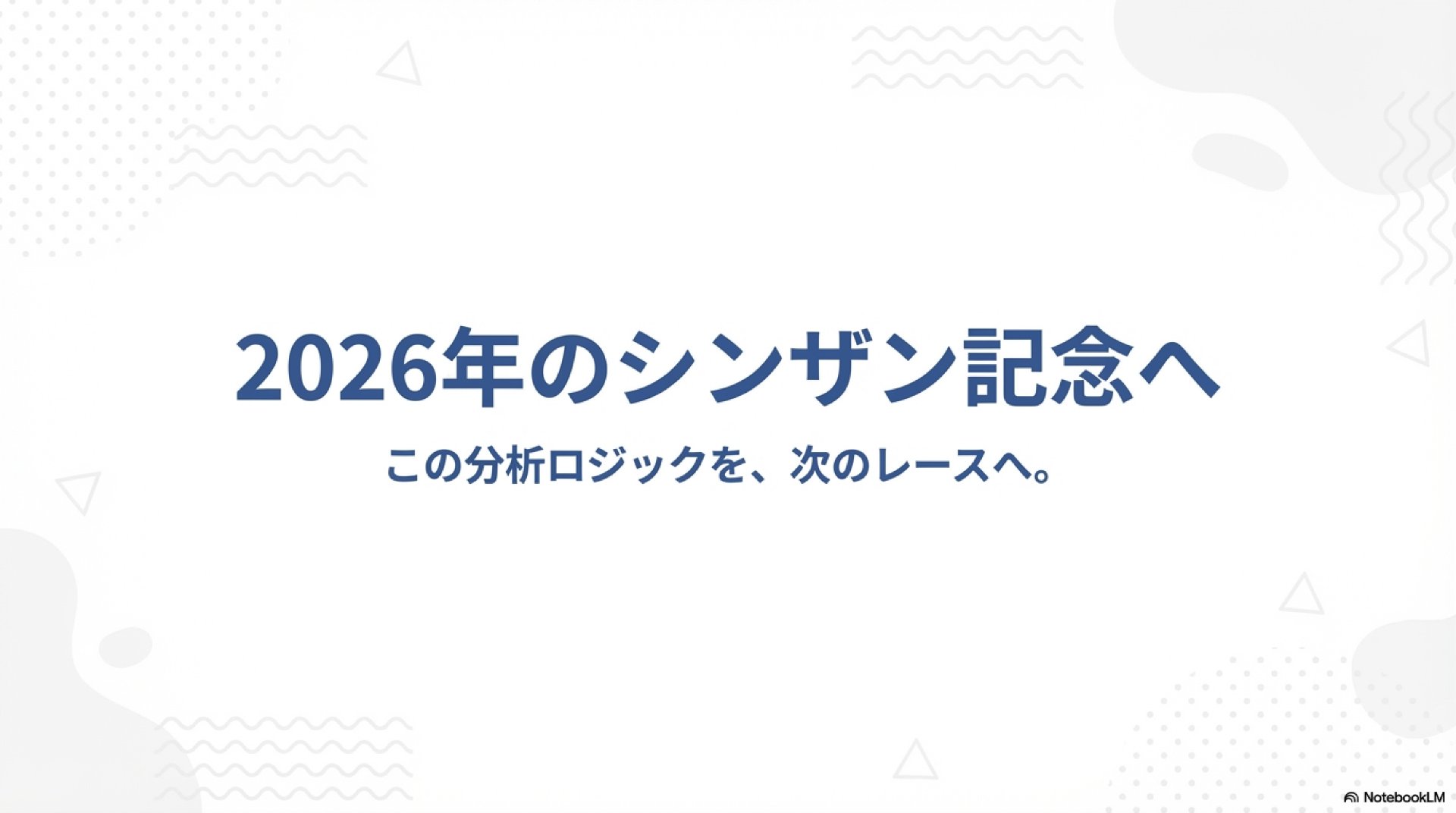 経験則という霧の中を彷徨う時代は終わった。本稿で提示したデータ駆動型アプローチこそ、シンザン記念という難解なレースを制覇するための、唯一無二の羅針盤である。