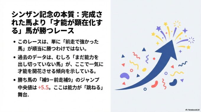 シンザン記念を攻略するコツは、「完成度」より「成長余地」を見ること。