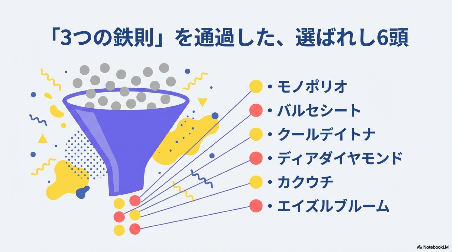 過去のパターンと今年の出走馬を照らし合わせて、最終的に6頭に絞りました。