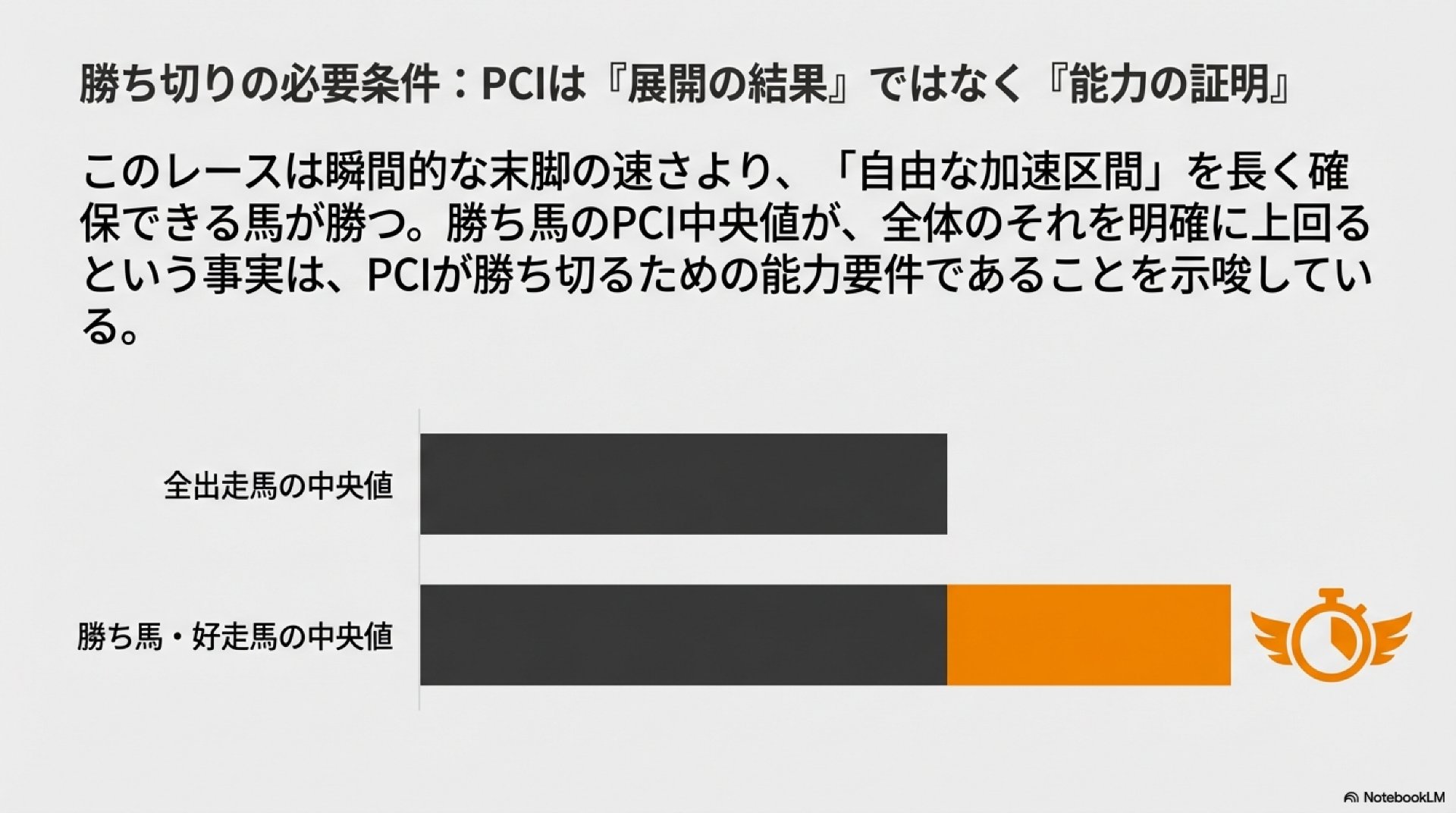 つまりPCIは「勝ち切りのための必要条件」。補9ジャンプで特定した潜在能力を、実際の勝利に転換できるかを測る重要なフィルターです。