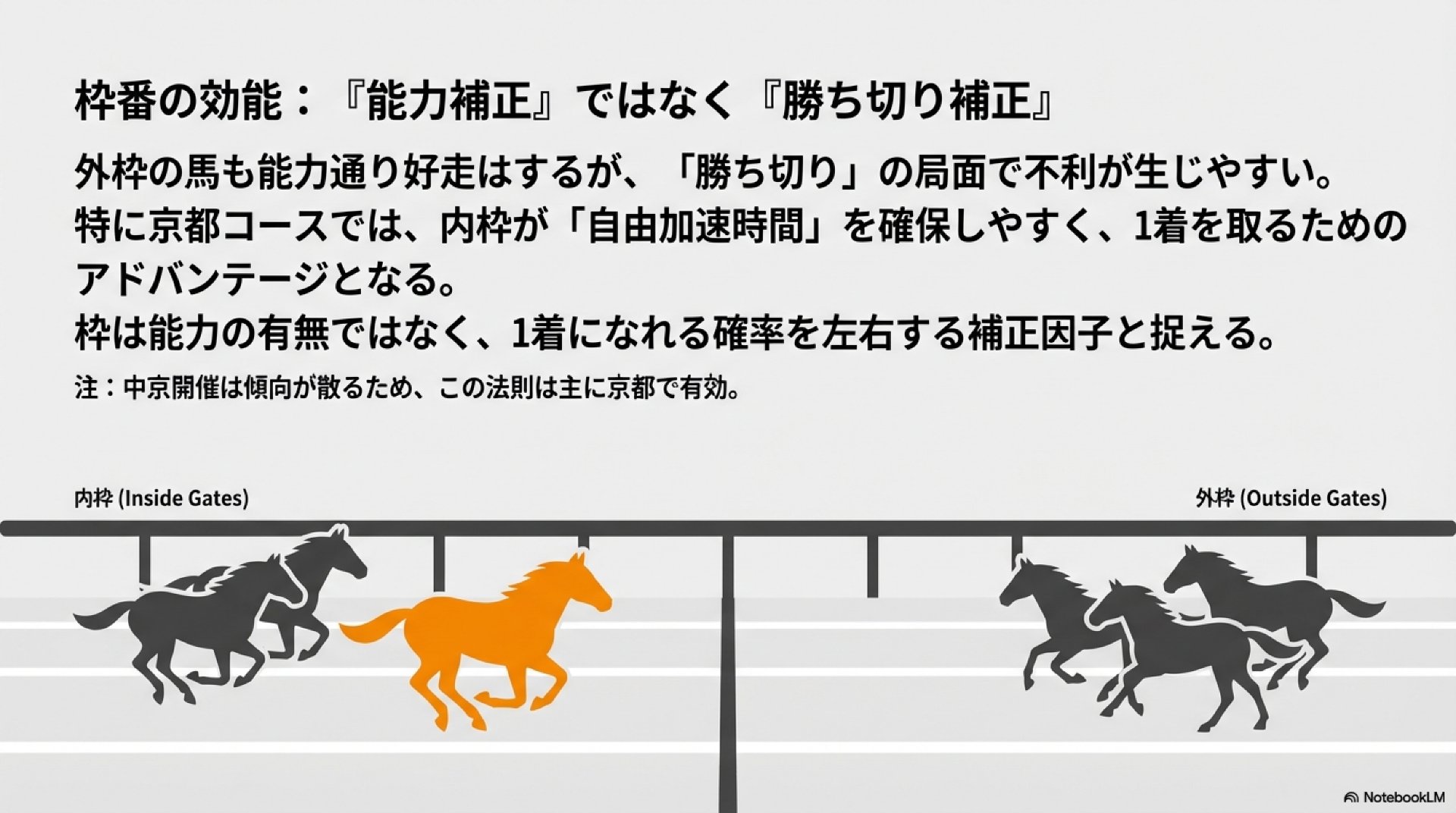• 京都開催なら内枠が強力な「勝ち切り補正」として機能