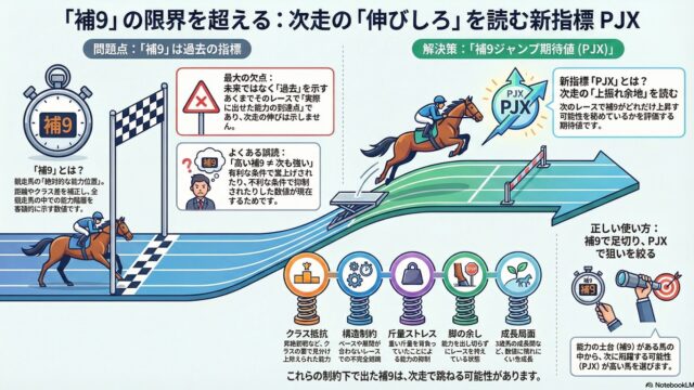 「能力」から「伸び代」へ。競馬予測を更新する新思考フレームはじめに:既存指標の「違和感」から生まれる、予測の新次元競馬予測の世界において、客観的指標に基づくデータ分析は不可欠である。その中でも、TARGETに搭載される「補9」は、距離やクラ...